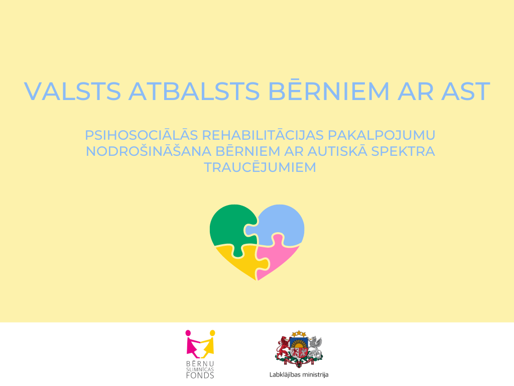 Pilotprojekts nodrošinās psihosociālās rehabilitācijas pakalpojumu uzturošās terapijas veidā bērniem ar AST (turpmāk - pakalpojums), veicinās bērnu ar AST iekļaušanos sabiedrībā un sociālā statusa iegūšanu jeb atgūšanu. BSF bērniem, kuru vecāki pieteiksies pakalpojumam, atbilstoši ārsta rekomendācijām apmaksās: ABA (lietišķās uzvedības analīzes) terapijas, ergoterapeita, logopēda vai audiologopēda nodarbības. Lasīt tālāk.... |