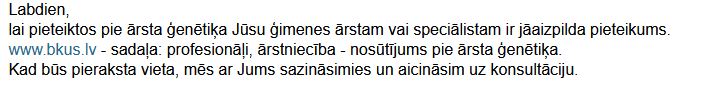 Uzzināt par savu rindu var caur e- pastu genetika@bkus.lvLasīt tālāk....* Через рижского генетика можно получить специализированное питание, если такое необходимо ! |