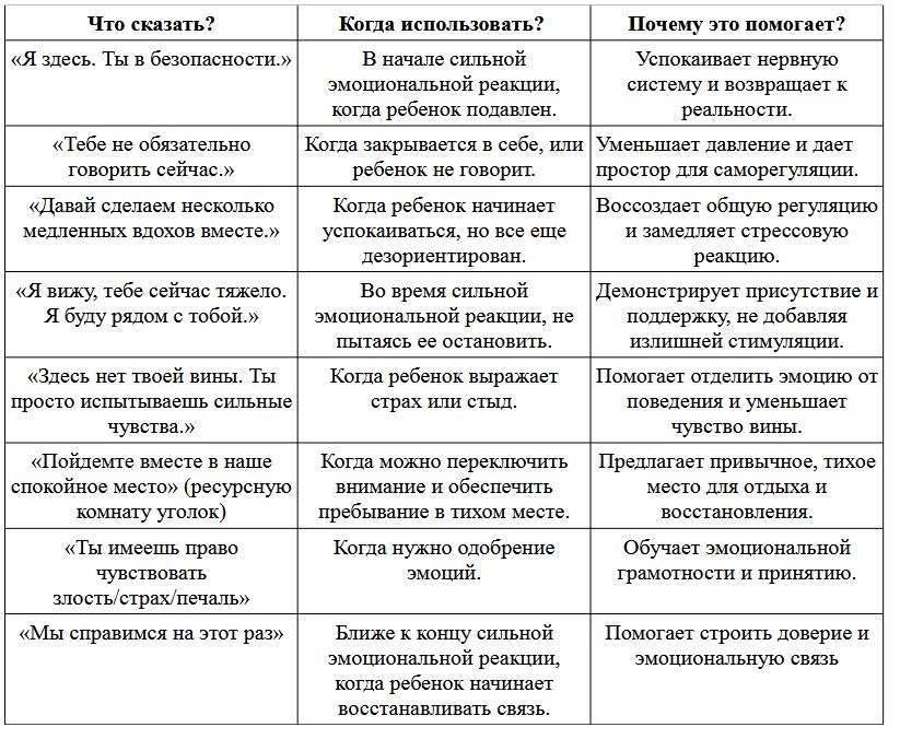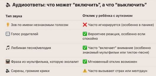 Аудиоответы: что может "включить", а что "выключить" Совет при поиске: используйте аудио с телефона - фразу или песню, которую ребенок любит и часто повторяет. Это может "открыть" его внимание. Мелтдаун (сенсорная перегрузка):